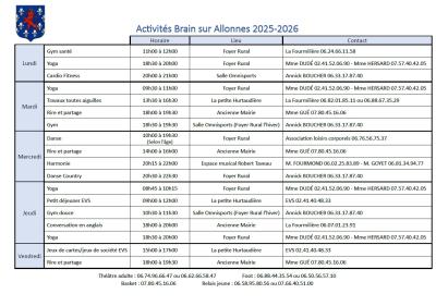 PLANNING DES ACTIVITÉS